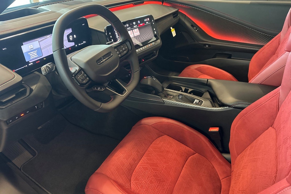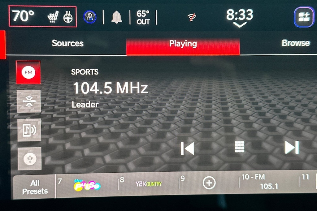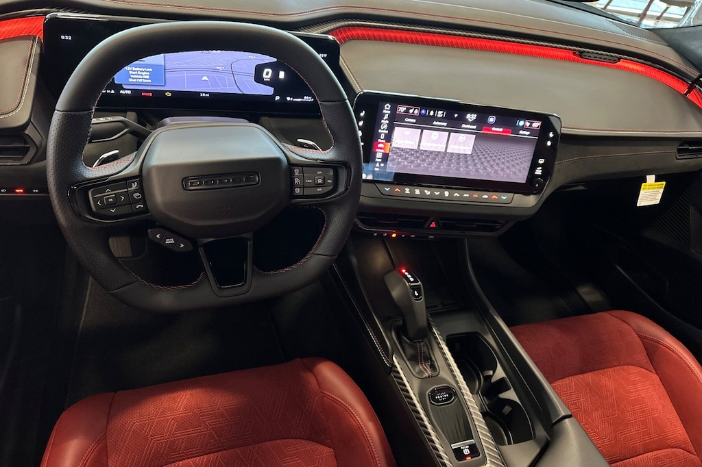 Slip behind the wheel and you'll be greeted by a stunning 12.3-inch Uconnect 5 infotainment system, providing seamless connectivity and intuitive controls. The Charger's performance-oriented interior features premium leather and cloth seating, with ventilated front seats and a heated steering wheel for maximum comfort.