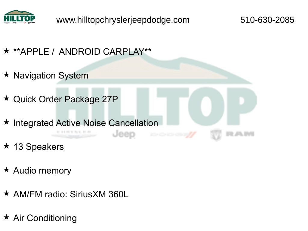 Cutting-edge technology is at your fingertips, with features like the Integrated Active Noise Cancellation and the intuitive Uconnect infotainment system with Apple CarPlay and Android Auto integration. The 13-speaker audio system will immerse you in a concert-hall-like experience, while the Navigation System ensures you always reach your destination with ease.