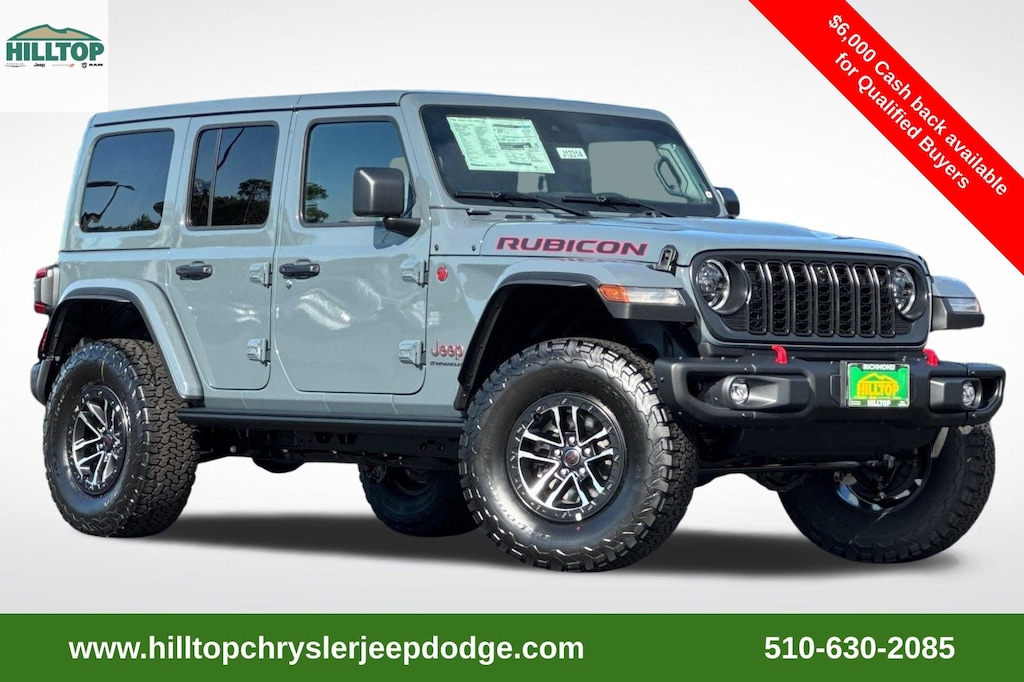 Anvil Clear Coat 2025 Jeep Wrangler Rubicon X 4WD 8-Speed Automatic 3.6L V6 24V VVT 12.3" Touchscreen Display, 35" Tire Suspension, 4-Wheel Disc Brakes, 4.56 Rear Axle Ratio, 4G LTE Wi-Fi Hot Spot, 8 Speakers, 97 MPH Vehicle Max Speed Calibration, ABS brakes, Acoustic Front Seat Area Carpet, Acoustic Laminated Front Door Glass, Air Conditioning, Alloy wheels, Alpine Premium Audio System, AM/FM radio: SiriusXM, Anti-Lock 4-Wheel Disc Perf Brakes, Apple CarPlay, Apple CarPlay/Android Auto, Auto High Beam Headlamp Control, Auto-Dimming Rear-View Mirror, Automatic temperature control, Auxiliary Switches, Blind Spot & Cross Path Detection, Body Color 3-Piece Hard Top, Body Color Rubicon Highline Flare, Brake assist, Class II Receiver Hitch, Connected Travel & Traffic Services, Connectivity - US/Canada, Convenience Group, Dual front impact airbags, Electronic Stability Control, Freedom Panel Storage Bag, Front Center Armrest w/Storage, Front dual zone A/C, Google Android Auto, GPS Navigation, HD Radio, Heated Front Seats, Heated Steering Wheel, Integrated Off-Road Camera, Integrated Voice Command w/Bluetooth, Leather Wrapped Park Brake Handle, Leather Wrapped Shift Knob, MOPAR Hardtop Headliner, MOPAR Hinge-Gate Reinforcement, Nappa Leather Seats, ParkSense Rear Park Assist System, ParkView Rear Back-Up Camera, Passenger door bin, Performance Suspension, Power 4-Way Driver Lumbar Adjust, Power 4-Way Passenger Lumbar Adjust, Power Adjust 8-Way Driver Seat, Power Adjust 8-Way Front Passenger Seat, Power steering, Power windows, Premium Door Trim Panel, Quick Order Package 24Y Rubicon X, Radio data system, Radio: Uconnect 5 Nav w/12.3" Display, Radio: Uconnect 5 w/12.3" Display, Rear Window Defroster, Rear Window Wiper/Washer, Remote keyless entry, Safety Group, SiriusXM Radio Service, SiriusXM w/360L, Split folding rear seat, Steel Front Bumper, Steel Rear Bumper, Steering wheel mounted audio controls, Technology Group, Traction control, Trailer Tow & Aux Switch Group, Trailer Tow Prep Package, Universal Garage Door Opener, Wheel Flare Extensions, Wheels: 17" x 7.5" Machined/Painted Black, Wheels: 17" x 8" Machined w/Black Pockets, Xtreme 35" Tire Package. Price includes: $1500 - 2025 National Bonus Cash . Exp. 12/01/2025 $2000 - 2025 National Select Inventory Bonus Cash. Exp. 01/05/2026 $2500 - 2025 National Retail Bonus Cash . Exp. 12/01/2025