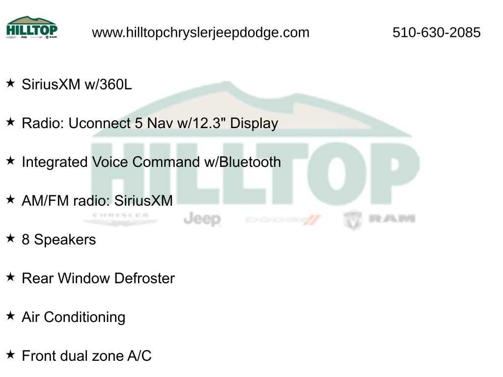 - Wireless phone connectivity: Uconnect w/Bluetooth