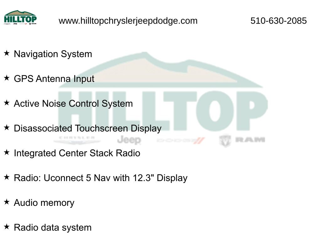 - Wireless phone connectivity: Uconnect w/Bluetooth