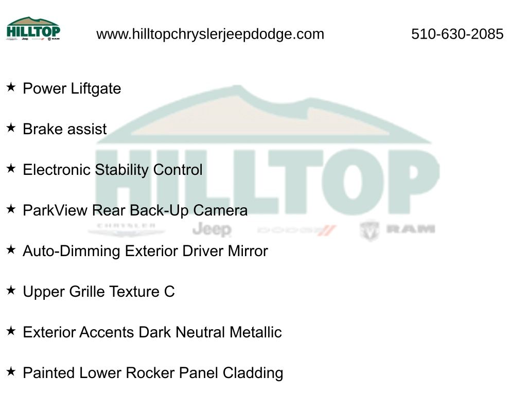 - Parking sensors: ParkSense with Stop front/rear/side