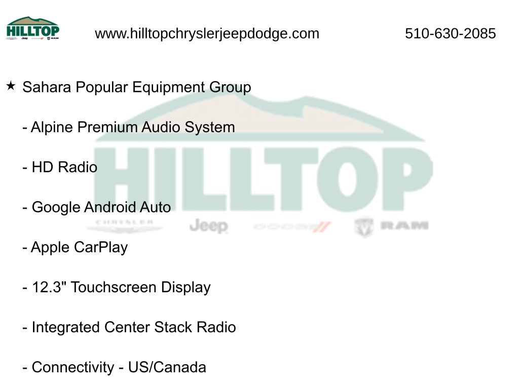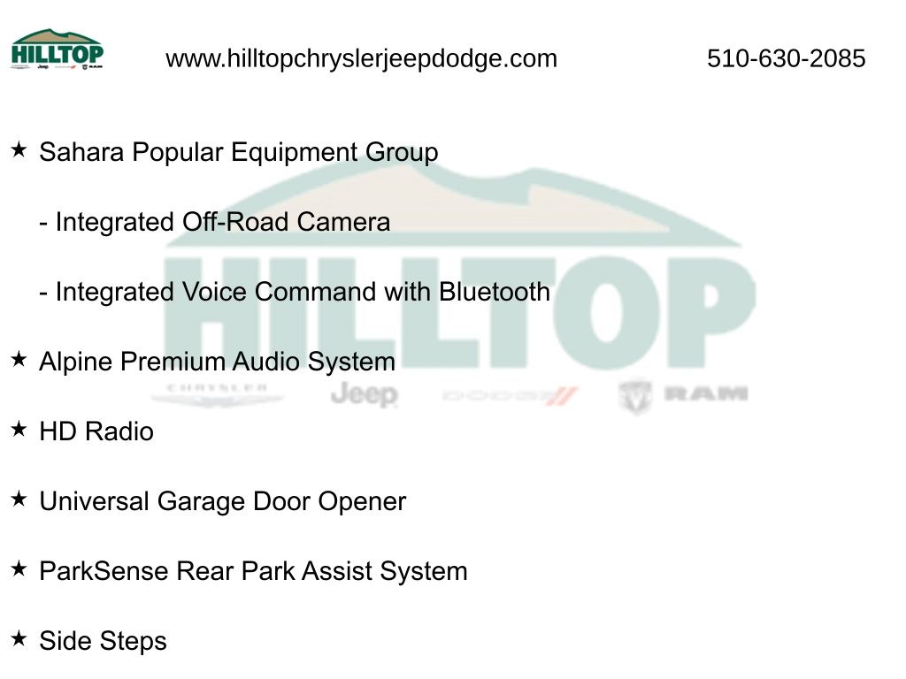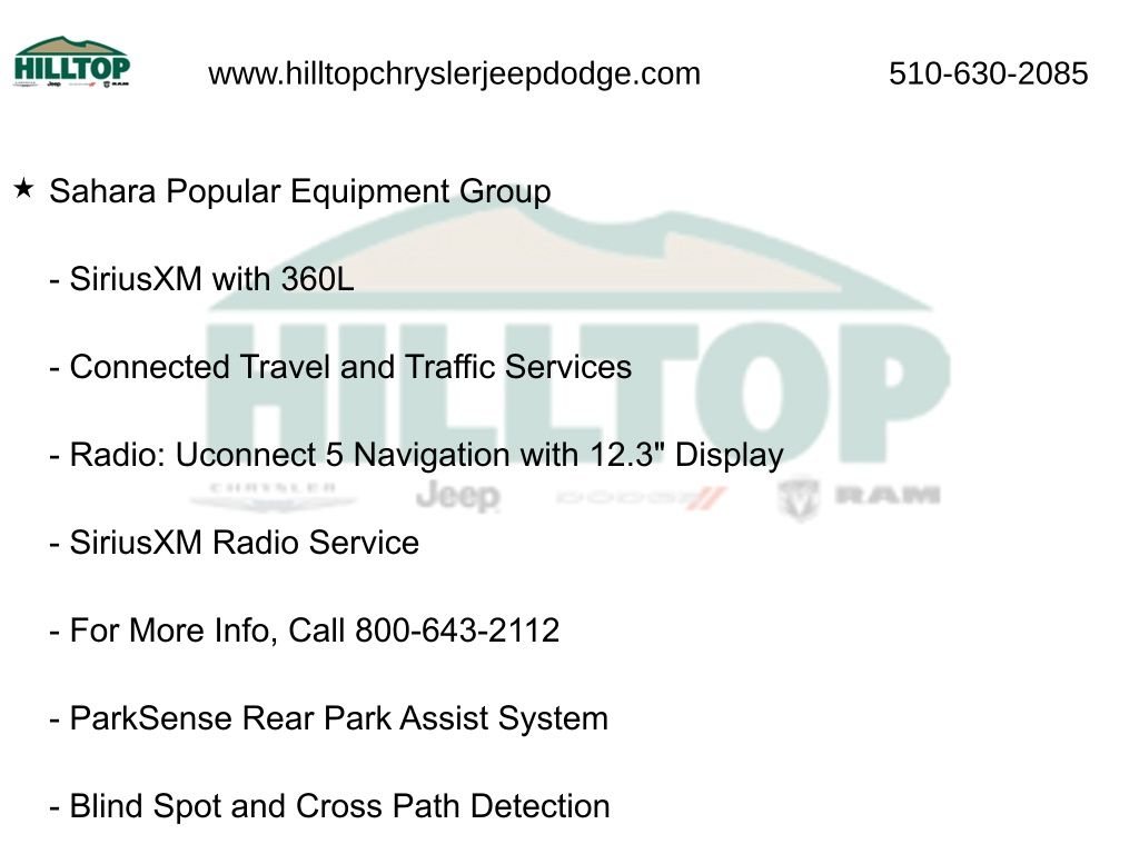 Elevate your driving experience with the Sahara Popular Equipment Group, which includes a host of premium features to enhance your comfort and convenience. Indulge in the convenience of the Quick Order Package 22G, tailored to meet your specific needs.