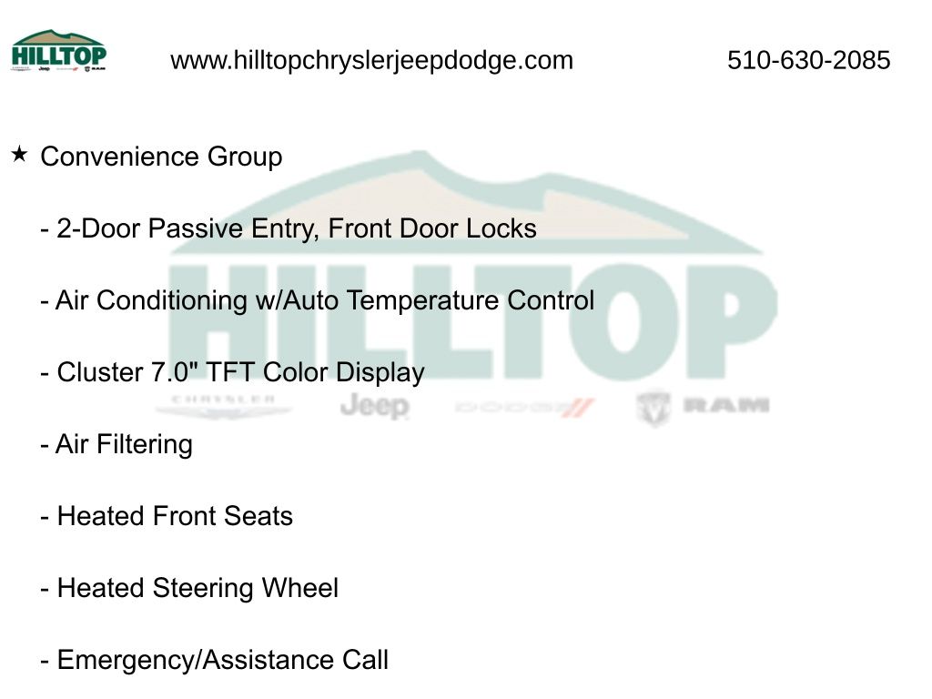 - Wireless phone connectivity: Uconnect w/Bluetooth