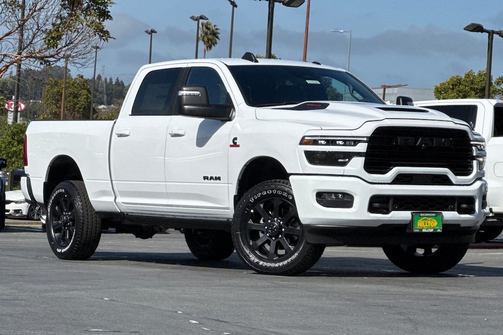 Bright White Clearcoat 2025 Ram 2500 Laramie 4WD 8-Speed Automatic 6.7L I6 #1 Seat Foam Cushion, 10 Speakers, 115V Auxiliary Rear Power Outlet, 14.4" Touchscreen Display, 17 Speaker harman/kardon Premium Sound, 2 Way Rear Headrest Seat, 2nd Row In Floor Storage Bins, 4 Way Front Headrests, 4G LTE Wi-Fi Hot Spot, Active Lane Management System, Adaptive Steering System, Air Conditioning, Alexa Built-In, Anti-Spin Differential Rear Axle, Apple CarPlay, Auto Adjust In Reverse Exterior Mirrors, Auto Dim Exterior Mirror, Auto High Beam Headlamp Control, Auto Power-Folding Mirrors, Auto-Dimming Exterior Passenger Mirror, Automatic temperature control, Black Exterior Mirrors, Black Exterior Truck Badging, Black Wheel Center Hub, Body Color Grille Surround, Bucket Seats, Chrome Exterior Mirrors, Connected Travel & Traffic Services, Connectivity - US/Canada, CTR Stop Lamp w/Cargo View Camera, Disassociated Touchscreen Display, Drowsy Driver Detection, Dual Wireless Charging Pad, Emergency Vehicle Alert System (EVAS), Exterior Mirrors Courtesy Lamps, Exterior Mirrors w/Heating Element, Exterior Mirrors w/Memory, Exterior Mirrors w/Supplemental Signals, Foam Bottle Insert (Door Trim Panel), Folding Flat Load Floor Storage, Forward & Reverse Utility Lights, Front dual zone A/C, Front Seat Back Map Pockets, Full Length Upgraded Floor Console, Global Telematics Box Module (TBM), Gloss Black Grille Billets/Accents, Google Android Auto, GPS Antenna Input, GPS Navigation, HD Radio, Heated Front Seats, Heated Steering Wheel, High Back Seats, Integrated Voice Command w/Bluetooth, Laramie Level 2 Plus Equipment Group, Leather Trimmed Bucket Seats, LED Bed Lighting, Mirror Running Lights, MOPAR Deployable Bed Step, MOPAR Spray In Bedliner, Navigation System, Night Edition, Off-Road Info Pages, Power 2-Way Driver Lumbar Adjust, Power 2-Way Passenger Lumbar Adjust, Power Adjust 8-Way Driver Seat, Power Adjust 8-Way Front Passenger Seat, Power Adjust Mirrors, Power Adjustable Convex Aux Mirrors, Power Adjustable Pedals w/Memory, Power Deployable Running Boards, Power driver seat, Power Heated Fold Telescopic Mirrors w/Memory, Power steering, Power Telescoping Mirrors, Quick Order Package 24H Laramie, Radio: Uconnect 5 Nav w/14.4" Display, Rain Sensitive Windshield Wipers, Rear 60/40 Folding Seat, Rear window defroster, Remote Tailgate Release, Selectable Tire Fill Alert, SiriusXM Radio Service, SiriusXM w/360L, Sport Performance Hood, Traffic Sign Recognition, Trailer Tow Pages, Wheels: 20" x 8.0" Black Painted Aluminum. Price includes: $2000 - 2025 National Bonus Cash . Exp. 12/01/2025 $2000 - 2025 National Holiday Select Inventory Bonus Cash. Exp. 12/01/2025