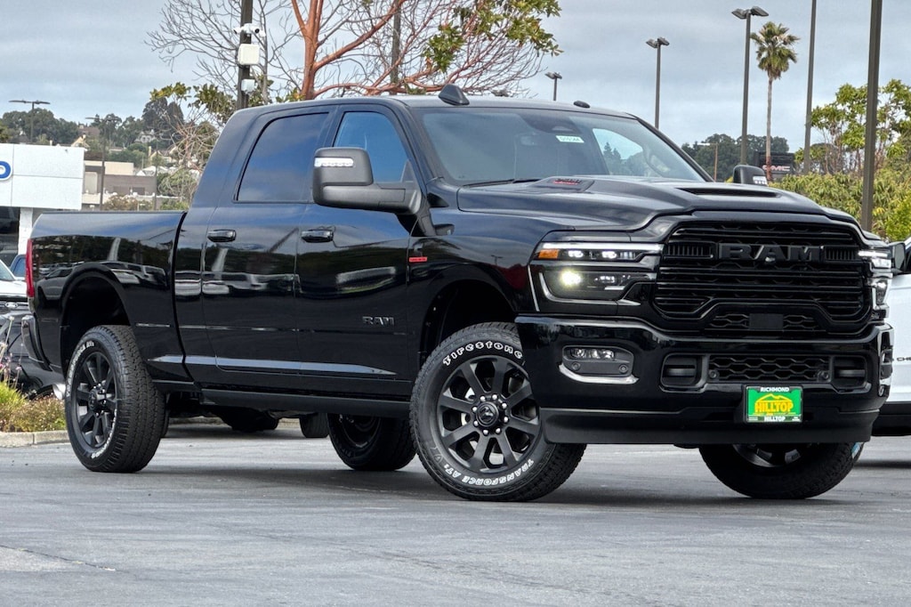 Diamond Black Crystal Pearlcoat 2025 Ram 2500 Laramie 4WD 8-Speed Automatic 6.7L I6 #1 Seat Foam Cushion, 10 Speakers, 115V Auxiliary Rear Power Outlet, 14.4" Touchscreen Display, 17 Speaker harman/kardon Premium Sound, 2 Way Rear Headrest Seat, 4 Way Front Headrests, 4-Wheel Disc Brakes, 4G LTE Wi-Fi Hot Spot, ABS brakes, Active Lane Management System, Adaptive Steering System, Air Conditioning, Alexa Built-In, Alloy wheels, AM/FM radio: SiriusXM with 360L, Anti-Spin Differential Rear Axle, Apple CarPlay, Apple CarPlay/Android Auto, Auto Adjust In Reverse Exterior Mirrors, Auto Dim Exterior Mirror, Auto High Beam Headlamp Control, Auto Power-Folding Mirrors, Auto-Dimming Exterior Passenger Mirror, Automatic temperature control, Black Exterior Truck Badging, Black Wheel Center Hub, Body Color Grille Surround, Brake assist, Bucket Seats, Center Stop Lamp w/Cargo View Camera, Connected Travel & Traffic Services, Connectivity - US/Canada, Disassociated Touchscreen Display, Drowsy Driver Detection, Dual Wireless Charging Pad, Emergency Vehicle Alert System (EVAS), Exterior Mirrors Courtesy Lamps, Exterior Mirrors w/Heating Element, Exterior Mirrors w/Memory, Exterior Mirrors w/Supplemental Signals, Foam Bottle Insert (Door Trim Panel), Forward & Reverse Utility Lights, Front dual zone A/C, Front Seat Back Map Pockets, Full Length Upgraded Floor Console, Global Telematics Box Module (TBM), Gloss Black Grille Billets/Accents, Google Android Auto, GPS Antenna Input, GPS Navigation, HD Radio, Heated Front Seats, Heated Steering Wheel, High Back Seats, Integrated Voice Command w/Bluetooth, Laramie Level 2 Plus Equipment Group, Leather Trimmed Bucket Seats, LED Bed Lighting, Mirror Running Lights, MOPAR Deployable Bed Step, MOPAR Spray In Bedliner, Navigation System, Night Edition, Off-Road Information Pages, ParkView Rear Back-Up Camera, Power 2-Way Driver Lumbar Adjust, Power 2-Way Passenger Lumbar Adjust, Power Adjust 8-Way Driver Seat, Power Adjust 8-Way Front Passenger Seat, Power Adjust Mirrors, Power Adjustable Convex Aux Mirrors, Power Adjustable Pedals w/Memory, Power Deployable Running Boards, Power driver seat, Power Heated Fold Telescope Mirrors w/Memory, Power steering, Power Sunroof, Power Telescoping Mirrors, Power windows, Quick Order Package 24H Laramie, Radio: Uconnect 5 Nav w/14.4" Display, Radio/Driver Seat/Mirrors/Pedals Memory, Rain Sensitive Windshield Wipers, Rear 60/40 Folding Seat, Rear window defroster, Remote keyless entry, Remote Tailgate Release, Selectable Tire Fill Alert, SiriusXM Radio Service, SiriusXM w/360L, Speed control, Sport Performance Hood, Steering wheel mounted audio controls, Traffic Sign Recognition, Trailer Tow Pages, Ventilated Front Seats, Wheels: 20" x 8" Black Painted Aluminum. Price includes: $2000 - 2025 National Bonus Cash . Exp. 12/01/2025 $2000 - 2025 National Holiday Select Inventory Bonus Cash. Exp. 12/01/2025