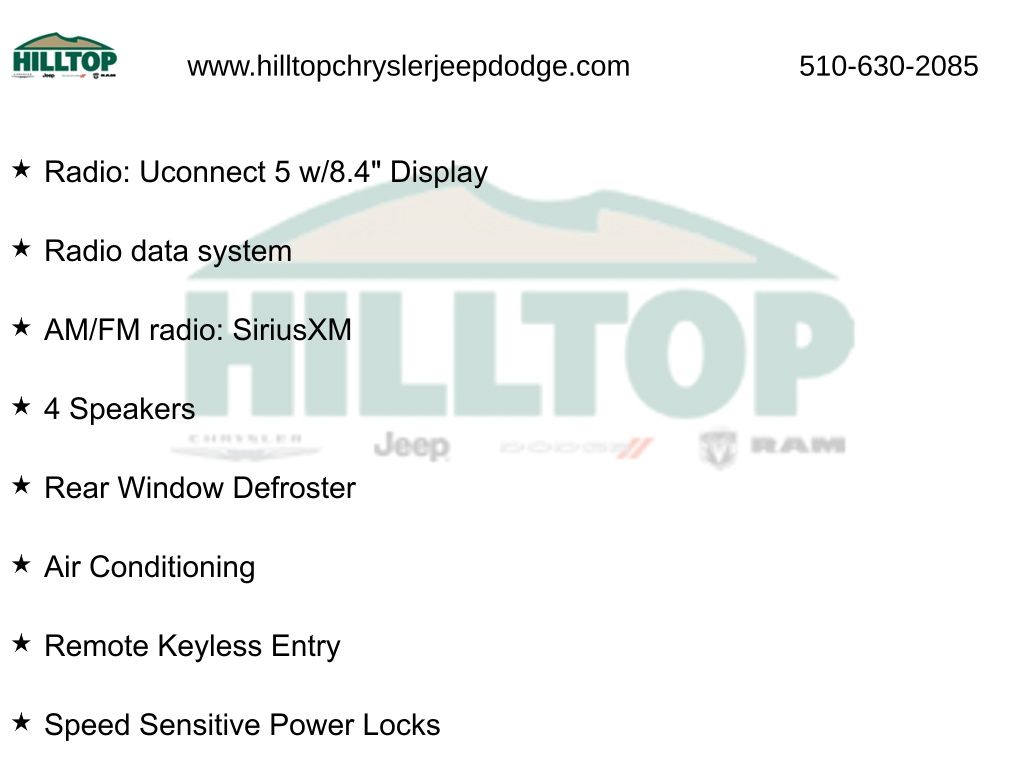 - Wireless phone connectivity: Uconnect w/Bluetooth