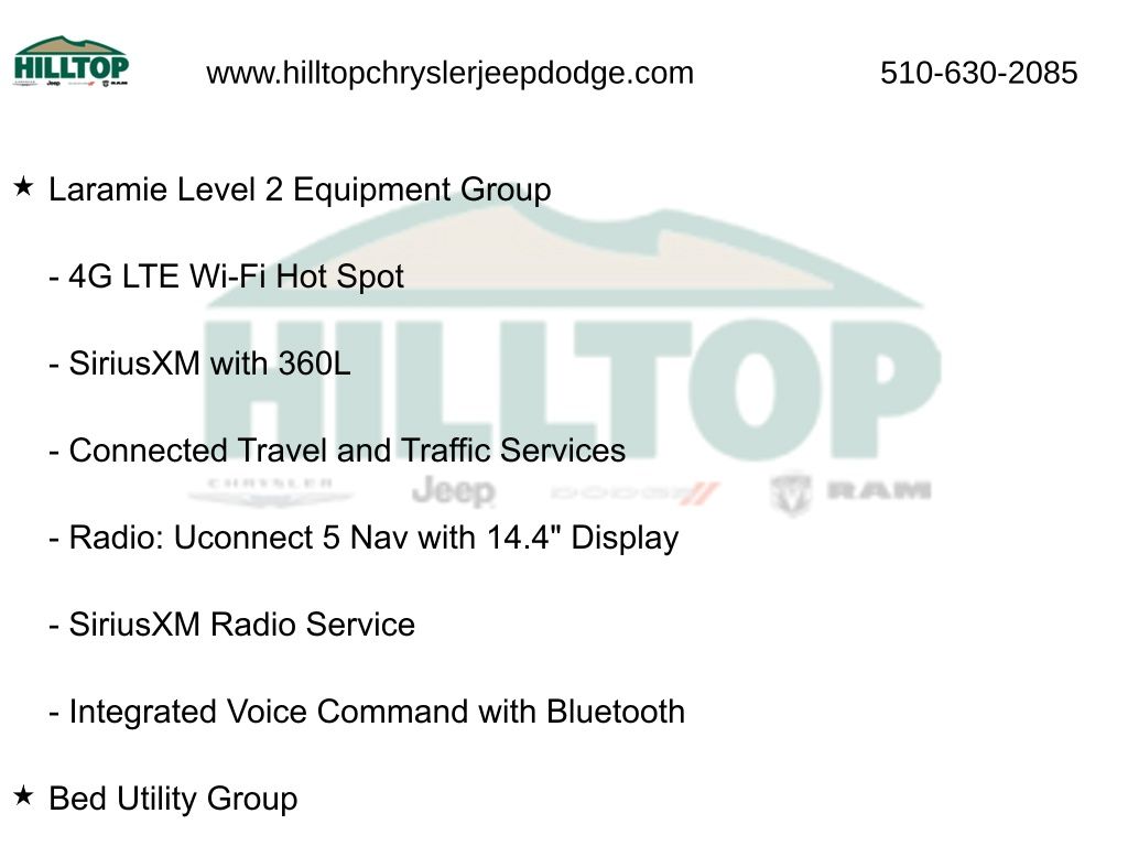 - Wireless phone connectivity: Uconnect w/Bluetooth