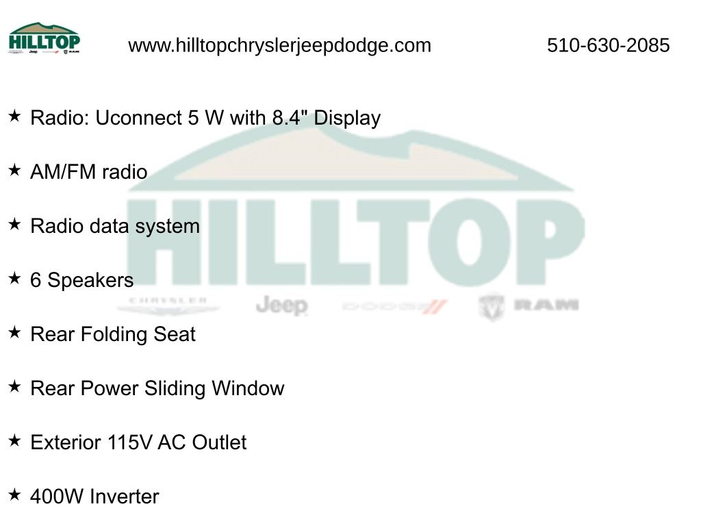 - Wireless phone connectivity: Uconnect w/Bluetooth