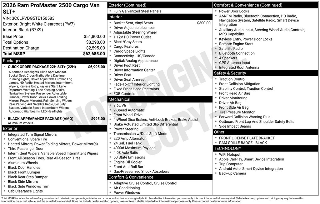 2026 Ram ProMaster 2500 PROMASTER 2500 SLT+ CARGO VAN HIGH ROOF 159' WB