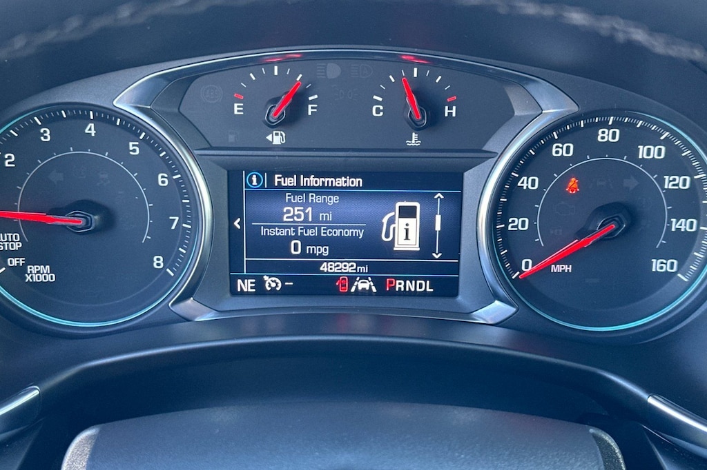**APPLE / ANDROID CARPLAY**, **HEATED SEATS**, **EXTRA CLEAN**, 17" Aluminum Wheels, 2 Rear USB Charging-Only Ports, 2 USB Ports & Auxiliary Input Jack, 2-Way Power Driver Lumbar Control Seat Adjuster, 4-Wheel Disc Brakes, 6 Speakers, 6-Speaker Audio System Feature, ABS brakes, Air Conditioning, Alloy wheels, AM/FM radio: SiriusXM, Auto High-beam Headlights, Automatic temperature control, Bluetooth® For Phone, Brake assist, Bumpers: body-color, Compass, Delay-off headlights, Deleted 3 Years of OnStar Remote Access, Driver 8-Way Power Seat Adjuster, Driver door bin, Driver vanity mirror, Dual front impact airbags, Dual front side impact airbags, Electronic Stability Control, Emergency communication system: OnStar and Chevrolet connected services capable, Four wheel independent suspension, Front anti-roll bar, Front Bucket Seats, Front Center Armrest, Front dual zone A/C, Front reading lights, Fully automatic headlights, Heated door mirrors, Heated front seats, Illuminated entry, Low tire pressure warning, Occupant sensing airbag, Outside temperature display, Overhead airbag, Panic alarm, Passenger door bin, Power door mirrors, Power driver seat, Power Liftgate, Power steering, Power windows, Preferred Equipment Group 1LT, Premium audio system: Chevrolet Infotainment 3, Radio data system, Radio: Chevrolet Infotainment 3 System w/AM/FM, Rear anti-roll bar, Rear reading lights, Rear window defroster, Remote keyless entry, Security system, SiriusXM, Speed control, Speed-sensing steering, Split folding rear seat, Spoiler, Steering wheel mounted audio controls, Tachometer, Telescoping steering wheel, Tilt steering wheel, Traction control, Trip computer.