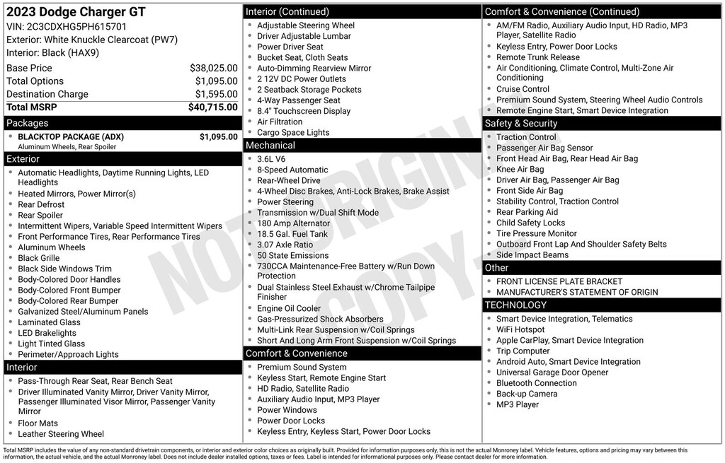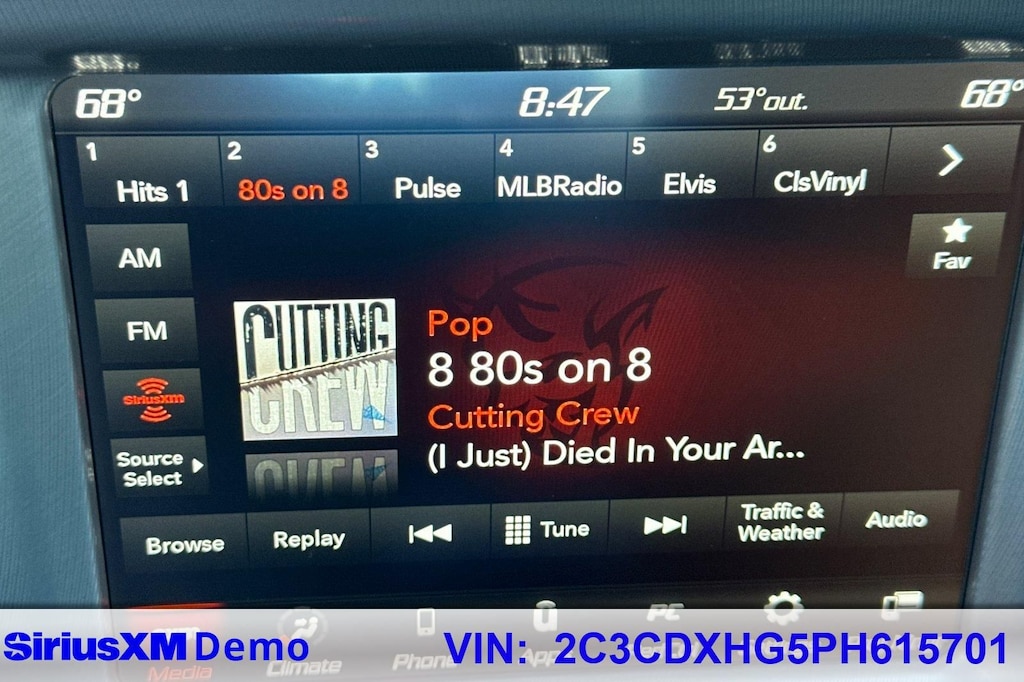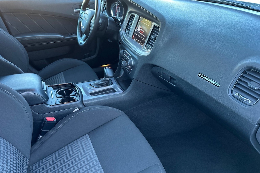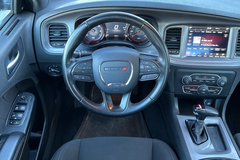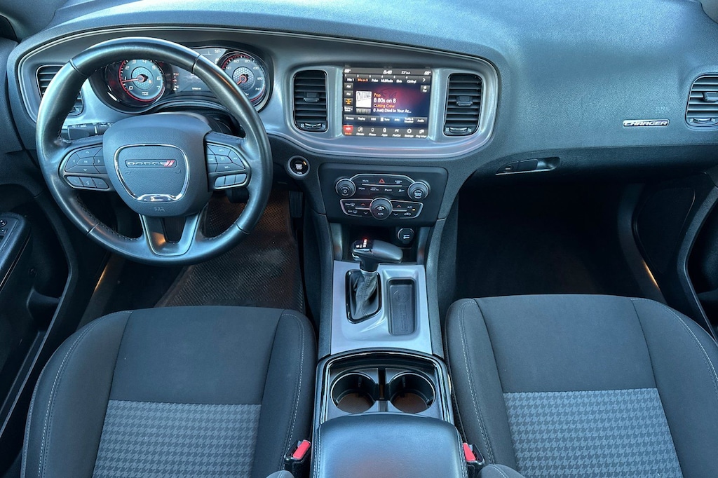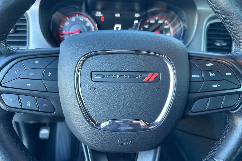 **APPLE / ANDROID CARPLAY**, **NO ACCIDENTS**, 1-Yr SiriusXM Guardian Trial, 2-Piece Shark Fin Antenna, 4-Wheel Disc Brakes, 4G LTE Wi-Fi Hot Spot, 6 Speakers, 8.4" Touchscreen Display, ABS brakes, Air Conditioning, Alloy wheels, AM/FM radio: SiriusXM, Anti-whiplash front head restraints, Apple CarPlay, Apple CarPlay/Android Auto, Auto-dimming Rear-View mirror, Automatic temperature control, Black 1-Piece Performance Spoiler, Black Badge, Black Dodge Grille Badge, Blacktop Package, Bumpers: body-color, Cloth Performance Seats, Compass, Compass Gauge, Delay-off headlights, Driver door bin, Driver vanity mirror, Exterior Mirrors w/Heating Element, For Details, Visit DriveUconnect.com, Four wheel independent suspension, Front Bucket Seats, Front Center Armrest, Front dual zone A/C, Front License Plate Bracket, Front reading lights, Fully automatic headlights, Garage door transmitter: HomeLink, Gloss Black I/P Cluster Trim Rings, Google Android Auto, GPS Antenna Input, HD Radio, Heated door mirrors, Illuminated entry, Integrated Center Stack Radio, Integrated Voice Command w/Bluetooth, Leather Shift Knob, Manufacturer's Statement of Origin, Media Hub (2 USB, AUX), Outside temperature display, Overhead console, Panic alarm, ParkView Rear Back-Up Camera, Passenger vanity mirror, Power 2-Way Driver Lumbar Adjust, Power 8-Way Driver Seat, Power door mirrors, Power driver seat, Power steering, Power windows, Radio: Uconnect 4C w/8.4" Display, Rear Armrest w/Cupholder Seat, Rear window defroster, Remote keyless entry, Rhombi 2-Pc Wheel Center Cap, Satin Black Charger Decklid Badge, Satin Black Dodge Tail Lamp Badge, Speed control, Spoiler, Steering wheel mounted audio controls, Traction control, Wheels: 20" x 8" Black Noise Painted.