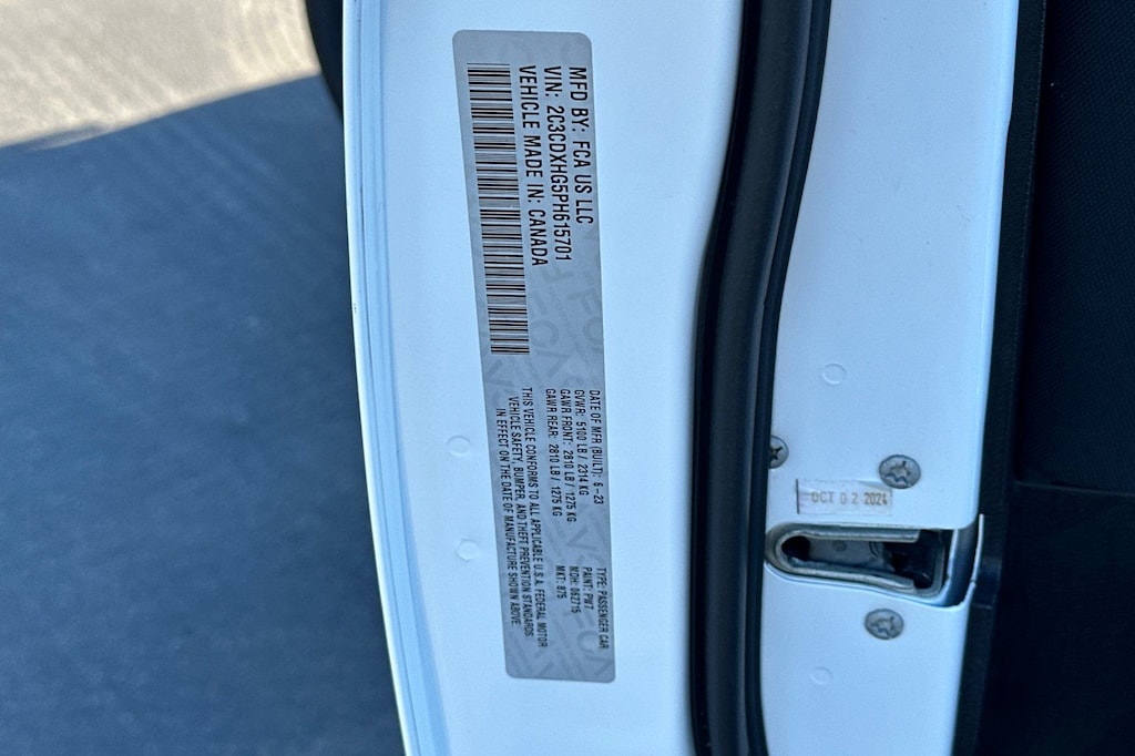 2023 Dodge Charger White Knuckle Clearcoat GT RWD 8-Speed Automatic 3.6L V6 24V VVT 19/30 City/Highway MPG