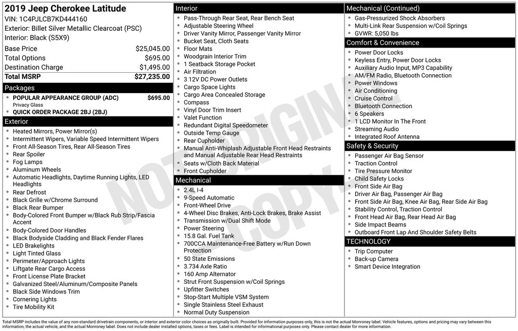 2019 Jeep Cherokee Billet Silver Metallic Clearcoat Latitude FWD 9-Speed 948TE Automatic 2.4L I4 22/31 City/Highway MPG