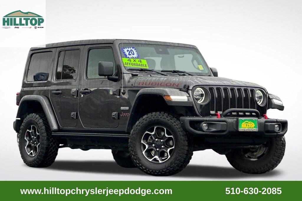 Hilltop CDJR makes buying or leasing your next car easy and enjoyable. Our CDJR finance team will spend time with you personally to discuss your preferences and budget, then help find loan rates that fit what you needâ"and negotiate the lease terms, too. We also offer extended warranty coverage and accessories that you can customize. We are your one-stop shop for buying or leasing cars in Richmond, CA. With our online car buying option you can browse the CDJR vehicles in stock, value your trade, apply for credit and estimate monthly payments all from your mobile deviceâ"or home computer. ****Vehicle Features May Include**** 8.4" Radio & Premium Audio Group (1-Year SiriusXM Guardian Trial, 4G LTE Wi-Fi Hot Spot, 5-Year SiriusXM Traffic Service, 5-Year SiriusXM Travel Link Service, 8.4" Touchscreen Display, Alpine Premium Audio System, Auto-Dimming Rear-View Mirror, Emergency/Assistance Call, For Details, Visit DriveUconnect.com, GPS Navigation, HD Radio, Radio: Uconnect 4C Nav w/8.4" Display, SiriusXM Traffic Plus, and SiriusXM Travel Link), Advanced Safety Group (Advanced Brake Assist and Full Speed Forward Collision Warning Plus), Cold Weather Group (Heated Front Seats and Heated Steering Wheel), LED Lighting Group (Daytime Running Lamps LED Accents, Front LED Fog Lamps, LED Reflector Headlamps, and LED Taillamps), Quick Order Package 28Y Recon (Black/Body Color Grille, Jeep Trail Rated Kit, MOPAR Bumper Hoop, MOPAR Hinge-Gate Reinforcement, Recon Badge, Recon Decals, Red Seat Belts, Wheels: 17" x 7.5" Machined/Painted Black, and Wrapped I/P Bezels w/Red Stitch), Recon Packa
