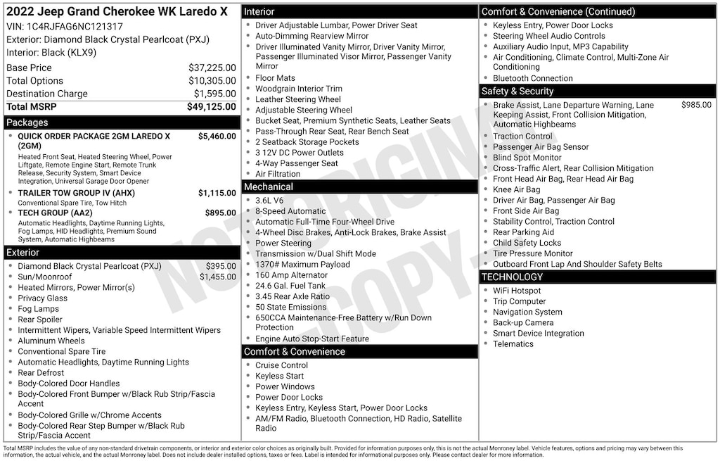 2022 Jeep Grand Cherokee WK Diamond Black Crystal Pearlcoat Laredo X 4WD 8-Speed Automatic 3.6L V6 24V VVT