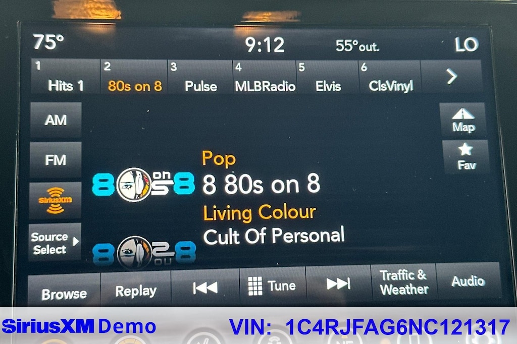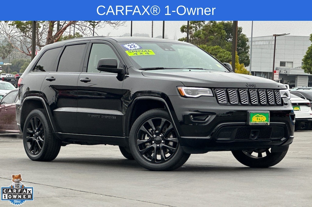 **APPLE / ANDROID CARPLAY**, **ONE OWNER CARFAX**, 115V Auxiliary Power Outlet, 180 Amp Alternator, 4-Wheel Disc Brakes, 506 Watt Amplifier, 6 Speakers, 7 & 4 Pin Wiring Harness, ABS brakes, Active Noise Control System, Advanced Brake Assist, Air Conditioning, Alloy wheels, Altitude Appearance Package, Altitude Grille, AM/FM radio: SiriusXM, Apple CarPlay/Android Auto, Auto High Beam Headlamp Control, Auto-dimming Rear-View mirror, Automatic temperature control, Bi-Xenon High-Intensity Discharge Headlamps, Black Suede Seats w/Black Stitching, Body Color Claddings, Body Color Fascia, Body Color Shark Fin Antenna, Brake assist, Bumpers: body-color, Class IV Receiver Hitch, Cloth Bucket Seats, Dark Day Light Opening Moldings, Dark Headlamp Bezel Finish, Dark Lens Taillamps, Delay-off headlights, Delete Laredo Badge, Electronic Stability Control, Four wheel independent suspension, Front Accent/Body Color Fascia, Front Bucket Seats, Front Center Armrest w/Storage, Front dual zone A/C, Front fog lights, Front LED Fog Lamps, Full Speed FWD Collision Warn Plus, Fully automatic headlights, Gloss Black Jeep Badging, Gloss Black Rear Fascia Applique, Heated door mirrors, Heated Front Seats, Heated Steering Wheel, Heavy-Duty Engine Cooling, Hill Descent Control, Lane Departure Warning Plus, LED Daytime Running Headlamps, Navigation System, Normal Duty Suspension, Outside temperature display, Overhead console, Panic alarm, ParkView Rear Back-Up Camera, Passenger door bin, Passenger vanity mirror, Power door mirrors, Power driver seat, Power Liftgate, Power steering, Power Sunroof, Power windows, Premium Alpine Speaker System, Protech II, Quadra-Trac II 4WD System, Quick Order Package 2GM Laredo X (DISC), Radio data system, Radio: Uconnect 4C Nav w/8.4" Display, Rear Accent/Body Color Fascia, Rear Fascia Black Molded in Color Step Pad, Rear Load Leveling Suspension, Rear reading lights, Rear seat center armrest, Rear window defroster, Remote keyless entry, Remote Start System, Security Alarm, Selec-Terrain System, Single Exhaust w/Bright Tip, Speed control, Speed-sensing steering, Split folding rear seat, Spoiler, Steering Wheel Mounted Audio Controls, Steering wheel mounted audio controls, Tachometer, Tech Group, Traction control, Trailer Tow Group IV, Universal Garage Door Opener, Wheels: 18" x 8.0" Fine Silver Aluminum, Wheels: 20" x 8.0" Gloss Black Aluminum.
