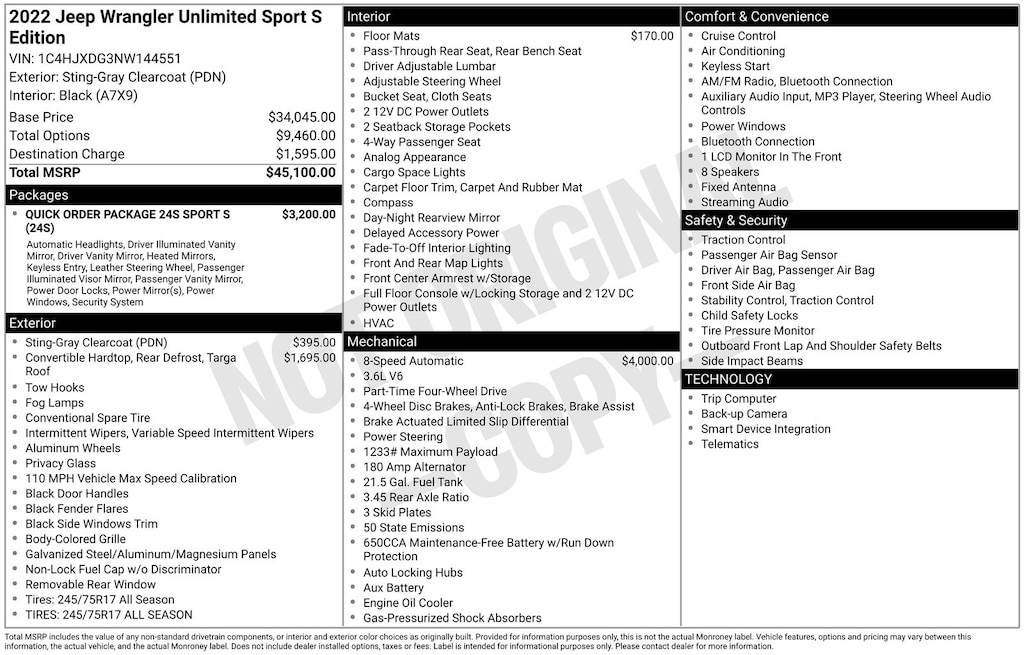 Whether you're an avid outdoor enthusiast, a weekend warrior, or simply someone who appreciates the thrill of the open road, this 2022 Jeep Wrangler Unlimited Sport S is the perfect companion. Experience the freedom and excitement of the great outdoors like never before. Visit our showroom today and let us help you make this exceptional Wrangler Unlimited Sport S your own.