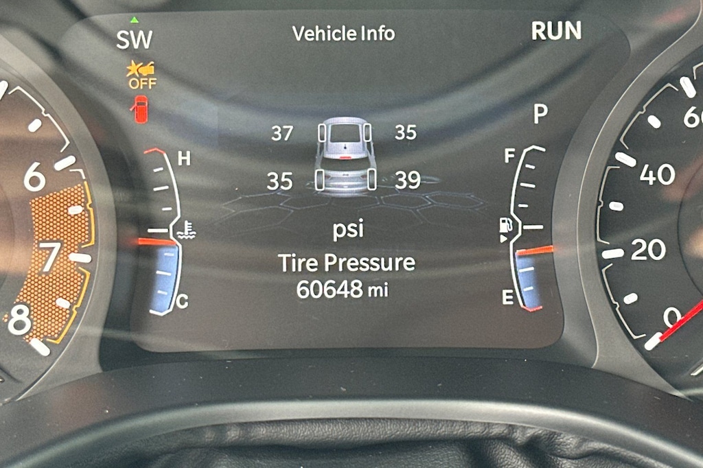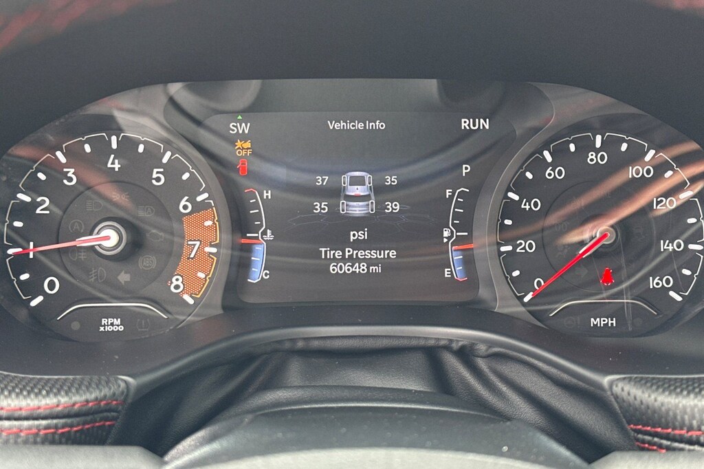 10.1" Touchscreen Display, 4-Wheel Disc Brakes, 6 Speakers, ABS brakes, Air Conditioning, Alloy wheels, AM/FM radio: SiriusXM, Auto High-beam Headlights, Auto-dimming Rear-View mirror, Automatic temperature control, Brake assist, Bumpers: body-color, Compass, Delay-off headlights, Disassociated Touchscreen Display, Driver door bin, Driver vanity mirror, Dual front impact airbags, Dual front side impact airbags, Electronic Stability Control, Four wheel independent suspension, Front anti-roll bar, Front Bucket Seats, Front Center Armrest w/Storage, Front dual zone A/C, Front fog lights, Front License Plate Bracket, Front reading lights, Fully automatic headlights, Heated door mirrors, Illuminated entry, Knee airbag, Leather Shift Knob, Low tire pressure warning, Occupant sensing airbag, Outside temperature display, Overhead airbag, Overhead console, Panic alarm, ParkView Rear Back-Up Camera, Passenger door bin, Passenger vanity mirror, Power door mirrors, Power steering, Power windows, Premium Cloth/Leather Trim Bucket Seats, Quick Order Package 29E, Radio: Uconnect 5 w/10.1" Display, Rain sensing wipers, Rear anti-roll bar, Rear seat center armrest, Rear window defroster, Remote keyless entry, Security system, SiriusXM Radio Service, Speed control, Split folding rear seat, Spoiler, Steering wheel mounted audio controls, Tachometer, Telescoping steering wheel, Tilt steering wheel, Traction control, Trip computer, Turn signal indicator mirrors, Wheels: 17" x 6.5" Painted Black Aluminum.