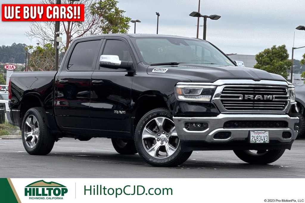 Hilltop CDJR makes buying or leasing your next car easy and enjoyable. Our CDJR finance team will spend time with you personally to discuss your preferences and budget, then help find loan rates that fit what you needâ"and negotiate the lease terms, too. We also offer extended warranty coverage and accessories that you can customize. We are your one-stop shop for buying or leasing cars in Richmond, CA. With our online car buying option you can browse the CDJR vehicles in stock, value your trade, apply for credit and estimate monthly payments all from your mobile deviceâ"or home computer. ****Vehicle Features May Include**** Bed Utility Group (MOPAR 4 Adjustable Cargo Tie-Down Hooks, MOPAR Spray In Bedliner, and Pick-Up Box Lighting), Laramie Level B Equipment Group (12" Touchscreen Display, 2nd Row In Floor Storage Bins, 4G LTE Wi-Fi Hot Spot, Apple CarPlay, Auto High Beam Headlamp Control, Blind Spot & Cross Path Detection, Connected Travel & Traffic Services, Connectivity - US/Canada, Disassociated Touchscreen Display, Electric Shift-On-Demand Transfer Case, Foam Bottle Insert (Door Trim Panel), For Details, Visit DriveUconnect.com, For More Info, Call 800-643-2112, Front Door Accent Lighting, Front LED Fog Lamps, Global Telematics Box Module (TBM), Google Android Auto, GPS Antenna Input, GPS Navigation, harman/kardon 19 Speaker Premium Sound, HD Radio, Integrated Center Stack Radio, Integrated Voice Command w/Bluetooth, LED Reflector Headlamps, Radio: Uconnect 5 Nav w/12.0" Display, Rain Sensitive Windshield Wipers, Rear Door Accent Lighting, Rear Power Sliding Window, Rear Underseat Compartment Storage, Rear Window Defroster, Remote Tailgate Release, SiriusXM Radio Service, SiriusXM w/360L, and USB Host Flip), Quick Order Package 27H Laramie, #1 Seat Foam Cushion, 10 Speakers, 3 Rear Seat Head Restraints, 3.21 Rear Axle Ratio, 4 Way Front Headrests, 4-Wheel Disc Brakes, 48V Belt Starter Generator, ABS brakes, Adjustable pedals, Air Conditioning, Alloy wheels, AM/FM radio: SiriusXM with 360L, Apple CarPlay/Android Auto, Audio memory, Auto-dimming door mirrors, Auto-Dimming Exterior Driver Mirror, Auto-dimming Rear-View mirror, Automatic temperature control, Brake assist, Bumpers: chrome, Chrome Exterior Mirrors, Class IV Receiver Hitch, Compass, Convex Wide-Angle Exterior Mirror Insert, Delay-off headlights, Driver door bin, Driver Seat Memory, Driver vanity mirror, Dual front impact airbags, Dual front side impact airbags, Electronic Stability Control, Exterior Mirrors Courtesy Lamps, Exterior Mirrors w/Heating Element, Exterior Mirrors w/Memory, Exterior Mirrors w/Supplemental Signals, Front anti-roll bar, Front Center Armrest w/Storage, Front dual zone A/C, Front fog lights, Front License Plate Bracket, Front reading lights, Front Seat Back Map Pockets, Front wheel independent suspension, Fully automatic headlights, Garage door transmitter, Heated door mirrors, Heated Front Seats, Heated front seats, Heated Steering Wheel, Heated steering wheel, Illuminated entry, Leather steering wheel, Leather Trim 40/20/40 Bench Seat, Low tire pressure warning, Manufacturer's Statement of Origin, Memory seat, MOPAR Front & Rear Rubber Floor Mats, Navigation System, Occupant sensing airbag, Outside temperature display, Overhead airbag, Overhead console, Panic alarm, ParkSense Front/Rear Park Assist w/Stop (DISC), ParkView Rear Back-Up Camera, Passenger door bin, Passenger vanity mirror, Pedal memory, Power 2-Way Driver Lumbar Adjust, Power 2-Way Passenger Lumbar Adjust, Power 8-Way Driver & Passenger Seats, Power door mirrors, Power driver seat,