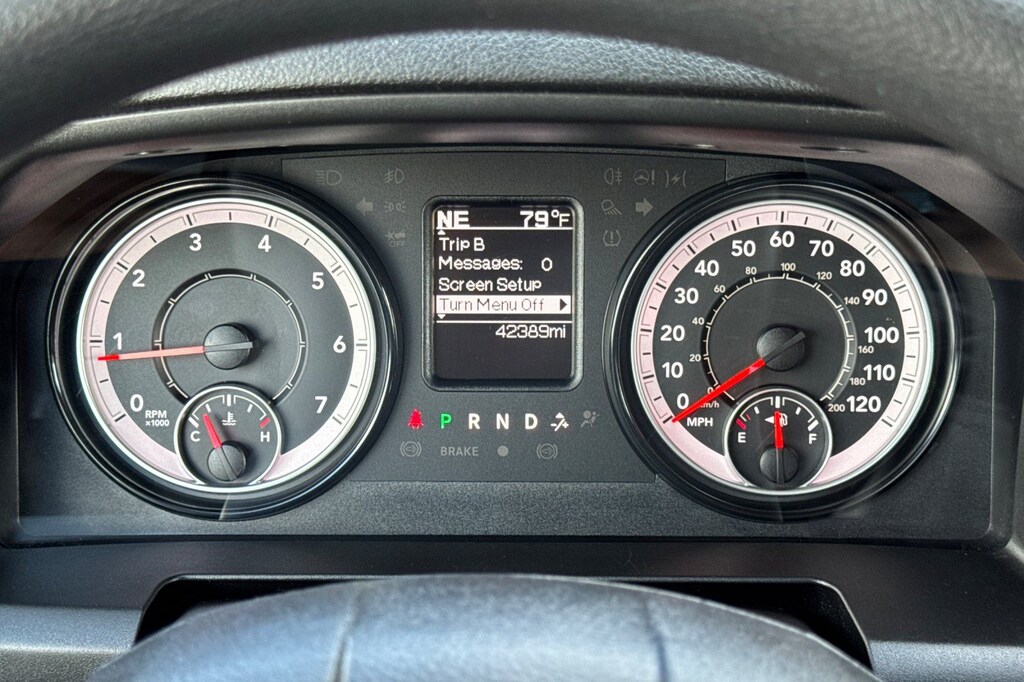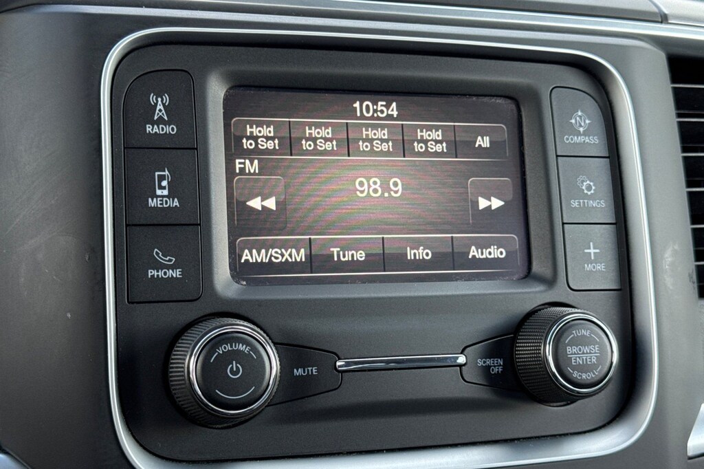 **BACKUP CAMERA**, **NO ACCIDENTS**, **EXTRA CLEAN**, 17" x 7" Aluminum Wheels, 3.21 Rear Axle Ratio, 4-Wheel Disc Brakes, 40/20/40 Split Bench Seat, 6 Speakers, ABS brakes, Active Grille Shutters, Air Conditioning, Alloy wheels, AM/FM radio: SiriusXM, Audio Input Jack for Mobile Devices, Black Exterior Mirrors, Brake assist, Bumpers: chrome, Center Hub, Charge Only Remote USB Port, Cloth 40/20/40 Bench Seat, Compass, Delay-off headlights, Driver door bin, Dual front impact airbags, Dual front side impact airbags, Electronic Shift, Electronic Stability Control, Exterior Mirrors w/Heating Element, Front anti-roll bar, Front Armrest w/3 Cupholders, Front Center Armrest w/Storage, Front License Plate Bracket, Front reading lights, Front wheel independent suspension, Fully automatic headlights, GPS Antenna Input, Heated door mirrors, Illuminated entry, Integrated Voice Command w/Bluetooth, Low tire pressure warning, Manufacturer's Statement of Origin, Occupant sensing airbag, Outside temperature display, Overhead airbag, Overhead console, Panic alarm, ParkView Rear Back-Up Camera, Passenger door bin, Passenger vanity mirror, Power door mirrors, Power steering, Power windows, Quick Order Package 29G SLT, Radio data system, Radio: Uconnect 3 w/5" Display, Rear anti-roll bar, Rear step bumper, Remote keyless entry, Remote USB Port, Speed control, Tachometer, Tilt steering wheel, Tip Start, Traction control, Trip computer, Variably intermittent wipers, Voltmeter.