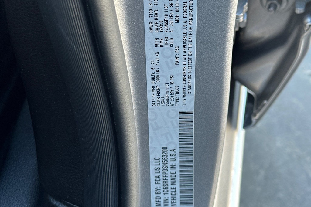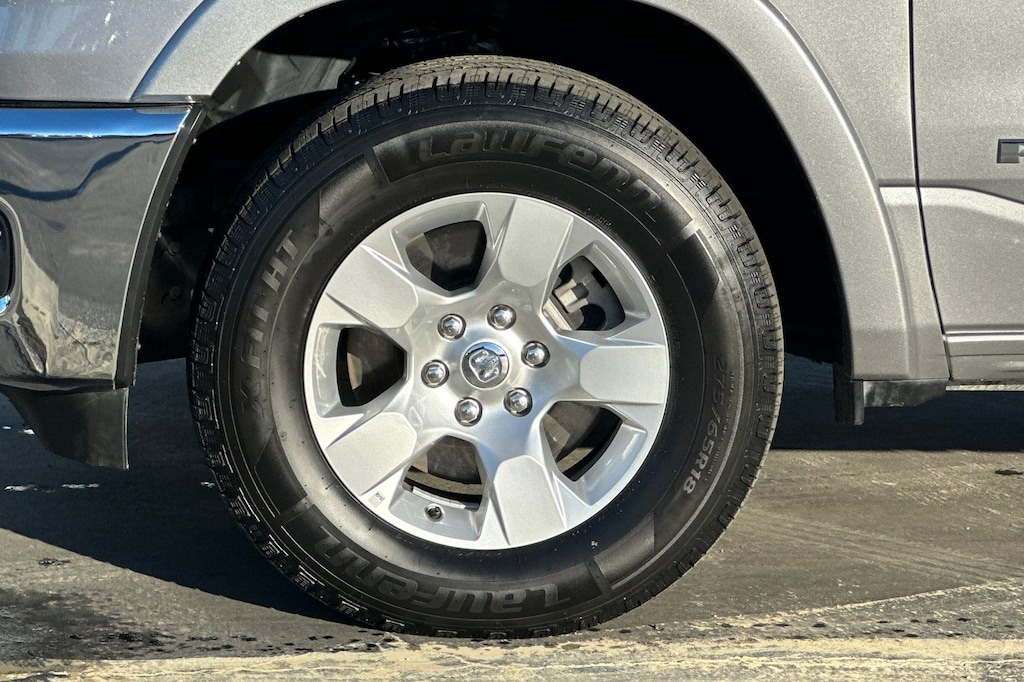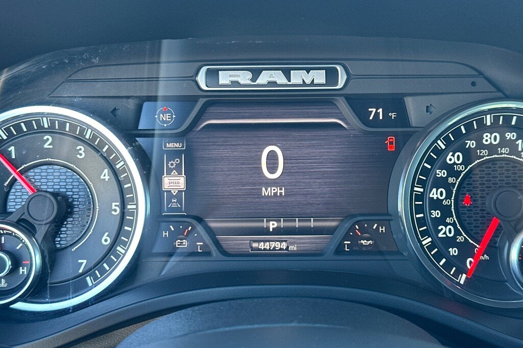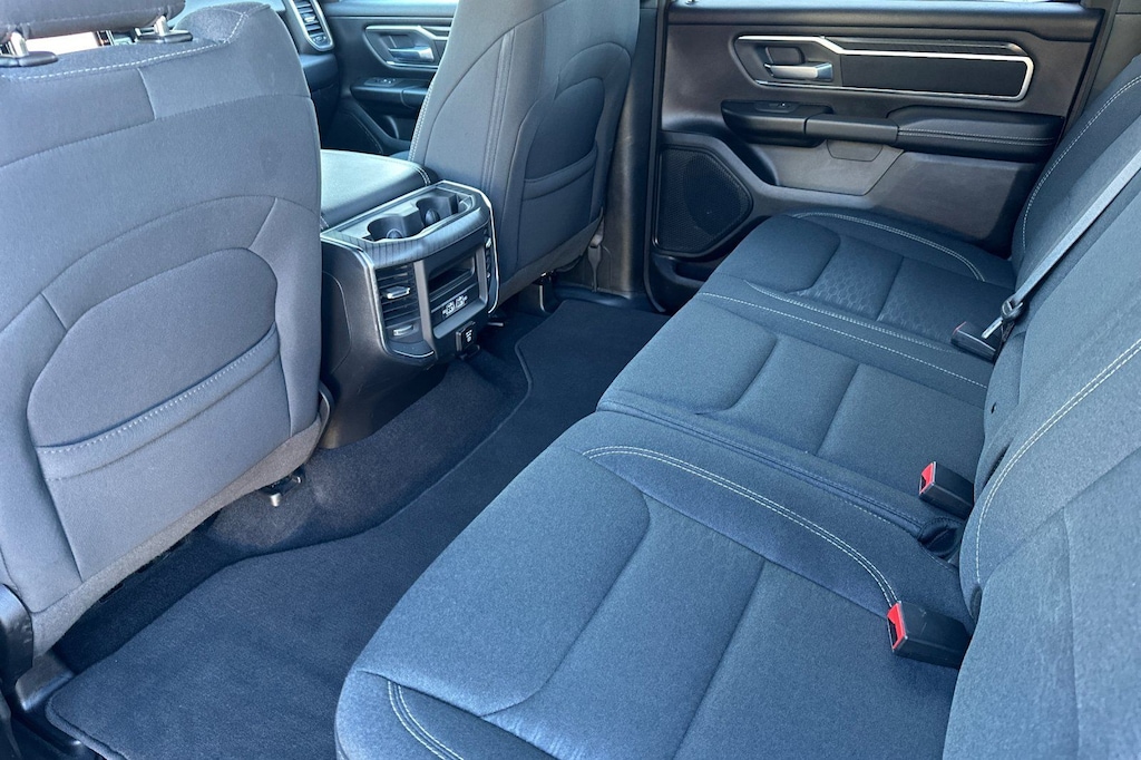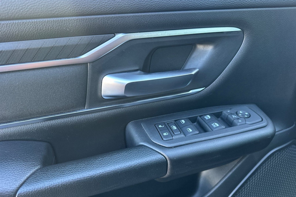Slip behind the wheel and experience the luxurious cabin, complete with deluxe cloth bucket seats, a power-adjustable driver's seat, and a leather-wrapped steering wheel. The spacious interior and versatile storage solutions make this Ram 1500 the perfect companion for work, play, and everything in between.