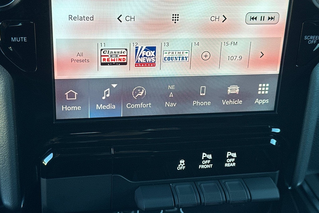 The Big Horn/Lone Star trim level takes this Ram 1500 to the next level, offering the Big Horn Level 2 Equipment Group. This package includes a stunning 12-inch touchscreen display, Apple CarPlay and Android Auto integration, a premium audio system with 9 amplified speakers and a subwoofer, and a wealth of advanced driver-assistance technologies.
