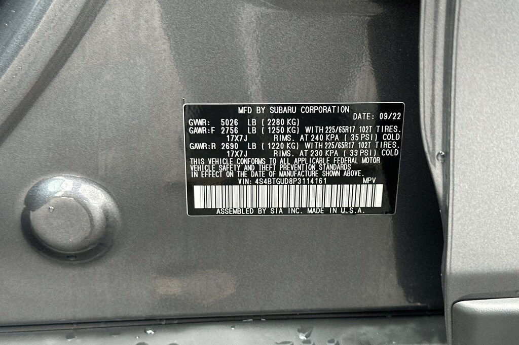 **MOONROOF / SUNROOF**, *NAVIGATION**, **ONE OWNER CARFAX**, **NO ACCIDENTS**, **EXTRA CLEAN**, 4-Wheel Disc Brakes, 4.444 Axle Ratio, 6 Speakers, ABS brakes, Air Conditioning, Alloy wheels, AM/FM radio: SiriusXM, Auto High-beam Headlights, Auto-Dimming Exterior Mirror w/Approach Light, Auto-dimming Rear-View mirror, Automatic temperature control, Brake assist, Cargo Sidewall Protector, Carpeted Floor Mats, Compass, Driver door bin, Dual front impact airbags, Dual front side impact airbags, Electronic Stability Control, Emergency communication system: STARLINK Safety Plus (3-year free trial), Exterior Parking Camera Rear, Four wheel independent suspension, Front anti-roll bar, Front Bucket Seats, Front Center Armrest w/Storage, Front dual zone A/C, Front fog lights, Fully automatic headlights, Heated door mirrors, Heated Front Bucket Seats, Heated front seats, Heated rear seats, Knee airbag, Leather steering wheel, Low tire pressure warning, Occupant sensing airbag, Outside temperature display, Overhead airbag, Panic alarm, Passenger door bin, Power door mirrors, Power driver seat, Power Liftgate, Power Moonroof, Power Moonroof & Navigation & RAB, Power passenger seat, Power steering, Power windows, Radio: Subaru STARLINK 11.6" Multimedia Nav System, Radio: Subaru STARLINK 11.6" Multimedia Plus Sys, Rear anti-roll bar, Rear Seat Back Protector, Rear seat center armrest, Rear window defroster, Remote keyless entry, Reverse Automatic Braking (RAB) System, Roof rack, Security system, Speed control, Speed-sensing steering, Splash Guards, Split folding rear seat, Spoiler, StarTex-Trimmed Upholstery, Steering wheel mounted audio controls, Steering Wheel Paddle Shift Control Switches, Tachometer, Telescoping steering wheel, Tilt steering wheel, Traction control, Trip computer, Turn signal indicator mirrors, Wheels: 17" x 7J Black Aluminum Alloy, Wilderness Package, Wireless Charger.